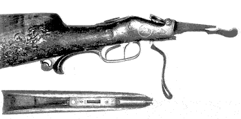 происходили в основном из-за слишком большой инерции массивных бойков, расположенных в теле рычага. Не очень удачно были выбраны соотношения рычагов системы и углов сопряжения копиров. Извлекать раздутые и разорванные поперек гильзы весьма затруднительно; предохранитель ружья, судя по форме курков, имел очень несовершенную устаревшую конструкцию.