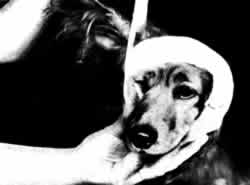 Огнестрельные ранения— как правило животное ранят рикошетом. Пули и дробь не проникают глубоко в ткани, их часто удается прощупать. Ни в коем случае не следует пытаться удалять пули самостоятельно, так как при этом вы рискуете повредить крупный кровеносный сосуд или сухожилие.Помощь:если наблюдается кровотечение, его необходимо остановить, собаку доставить к врачу.