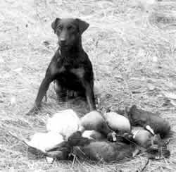 Вернемся к истории моих собак. Охотится я начал с 14 лет с отцом, а позднее уже и самостоятельно. Буквально с самого детства я держал разных собак, но предпочтение отдавал норным – фокстерьерам, вельштерьерам, таксам. Однажды, где-то в начале 70-х годов, я увидел на выставке ягдтерьера и, буквально влюбившись в эту породу, до сих пор остаюсь верен ей. В 1978 г. я привез из Тракая щенка-кобелька Дема и начал "воспитывать" его как универсальную собаку. Дем был очень понятливым псом, охотился с ним я и на пернатую дичь и на копытных. Ходил на фазана, куницу. А вот в чем Дем был настоящим "асом", так это в охоте на лису и енота. Охота с ним доставляла огромное удовольствие, я получал истинное наслаждение, наблюдая за работой своего друга. В 1981 г. мой верный помощник погиб, и долгое время мне никак не удавалось подобрать ему достойную замену — то в новом щенке, то уже во взрослой рабочей собаке, на мой взгляд, чего-то недоставало.