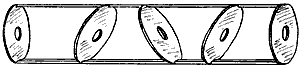 1 — трубка с отверстиями; 2 — рулоны сетки-теплообменника; 3 — перегородки |