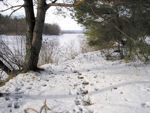 Через луга и дубраву к старому ольховнику вьется дорога со следами полозьев. По ней три раза в неделю, в санях, егеря возят сено, овес и кукурузу на подкормочную площадку, расположенную на поляне между дубравой и болотистым ольховником. Там, на площади в два десятка аров стоят под навесом ясли с сеном, неподалеку — из неплотно сбитых жердей квадратная загородка для кукурузы и там же вкопан выдолбленный сверху столб-солонец. Вся поляна испещрена многочисленными следами звериных копыт. На подкормку сюда постоянно приходят косули, кабаны и олени. Олени держались тремя табунками. В одном было три оленухи с быком-рогачом. В другом — пять ланок и бык-рогач, а в третьем — пять одних лишь быков с желтоватыми коронами ветвистых рогов. Следы копыт ланок-оленух похожи на косульи, но в полтора раза больше, а у рогачей превышают два вершка в длину. Если подходить тихо и не спеша, то уже издали на подкормке почти всегда можно было заметить какого-нибудь зверя. Днем там обычно бывали косули. Утром и под вечер появлялись олени, а уже в сумерках приходили осторожные кабаны. Копытные поедали не только подкормку. В бору, рощах и перелесках олени и косули скусывали концы веточек молодого подроста дубков, рябин, осин, верб и березок. Кое-где объедали хвою невысоких, отдельно растущих, молодых сосенок. Кабаны ковыряли болотистую землю в низинах, отыскивая корни рогоза и тростника, копались под дубами в поисках жёлудей. Везде, где бывали звери, тянулись их тропы. В нескольких местах они выходили из леса к реке и пересекали ее по льду, ведя в луга или на сельскую окраину.