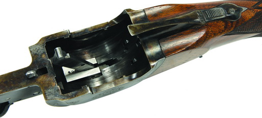 располагался в прочной ствольной коробке, разделявшей ложу на приклад и отдельное цевье. Замок оставался таким же, как и у капсюльных ружей, вмонтированный в шейку ложи. Г. Пибоди видоизменил курок