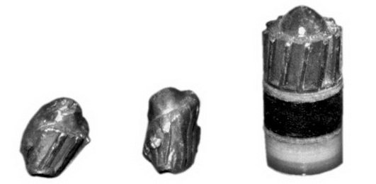 Значительным шагом вперед в этом отношении была разработка немецкого конструктора Вильгельма Бреннеке (1865-1951 гг.) Основав 1 апреля 1895 года в Лейпциге собственную фирму, он предложил охотникам весьма перспективную для своего времени пулю довольно оригинальной конструкции. Она представляла собой полый свинцовый цилиндр, на боковой поверхности которого располагалось шесть наклонных продольных ребер и одно поперечное — в задней части корпуса пули, к которому крепился войлочный стабилизатор. Чтобы войлок под высоким давлением пороховых газов не вминался в полость корпуса пули, между стабилизатором и корпусом конструктор разместил прокладку из очень плотного картона. Такая же прокладка накрывала войлочный стабилизатор сзади. Сам стабилизатор удерживался с помощью свинцового стержня, расклепанного на конце.