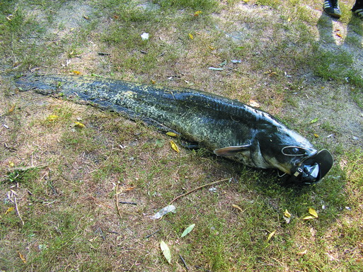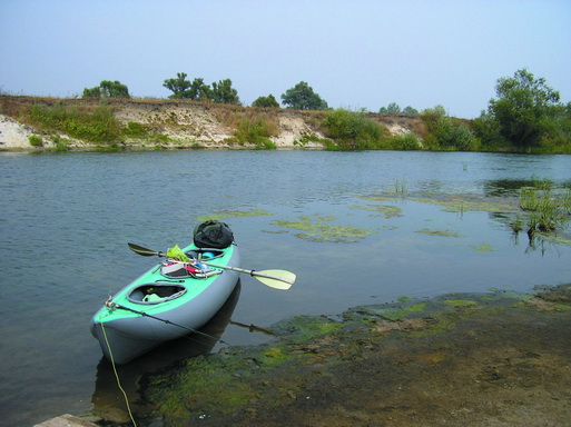 С рюкзаками за плечами и сумками в руках около часа пополудни мы с Игорем вышли к длинному речному заливу, в который впадал мутноватый ручей. Игорь — мой сослуживец и товарищ, вместе мы ходили по Кавказу и Карпатам. У залива, на травянистой полянке, обрамленной лозняками и вербами, в тени кустов стоял автомобиль. Наверное, кто-то рядом рыбачит. Игорь снял с тележки свою надувную байдарку и стал разворачивать ее, потом достал весла и насос. Пока мы готовились к путешествию, ловивший неподалеку за кустами рыбак, которого звали Евгений, притащил на поляну к своей машине… большущего сома, засунув ему в пасть кепку, чтоб не поранить руку о щетку зубов. Рыбина длиной в 5,5 моих «футов», — 168 см! и ее еле могу приподнять один. Никакого шума борьбы с рыбой мы не слышали, а Евгений сказал, что сом попался ему утром; тянул в основном в глубину, а, умаявшись, послушно пошел к берегу; водил он сома, почти час. Взял сом на «съедобный» силикон. О такой насадке я тогда еще не знал и подумал, что Евгений шутит. Сфотографировав рыбу и попрощавшись с удачливым рыбаком, мы сложили свои вещи в байдарку, взяли в руки весла и поплыли навстречу приключениям.