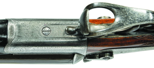 На прицельной планке выгрявировано название фирмы A.W.WOLF.SUHL. (такая же надпись отчеканена на подушке колодок), номер ружья небольшой — 8045, калибр 12, длина стволов стандартная для ружей Вольфа — 720 мм, вес — 3 кг. На стволах клеймо ижевской стали SPESIAL-GEWEHRLAUFSTAHL, какое-то время идущей вместо традиционной крупповской.