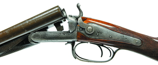 Так как поковка ствола бралась на заводе Зимсона, то просматриваются клейма Simson, выполненные прописью. Конструкция ружья — типичный «немец» с зимсоновским уклоном в части упрощенного устройства спусковой личинки. Однако шептала верхнего расположения — более рационально, хотя и более трудоемко — размещены «по-зауэровски» в колодке с устройством замков Энсон-Дилеевского типа. Запирание тройное с болтом Гринера, типичное. Так как это ружье самое простое в линейке оружия Вольфа, то эжекторы отсутствуют. Оформление тоже типично простое. Дерево родное, да и все ружье отлично сохранилось благодаря бережному с ним обращению. Это в принципе такое же ружье, какое я увидел впервые в далекие шестидесятые годы. Невзирая на его немецкую типичность, ружье как-то иначе лежит в руках, чем Зауэр и Зимсон. Вероятно, сказывается баланс и его абсолютная прикладистость.