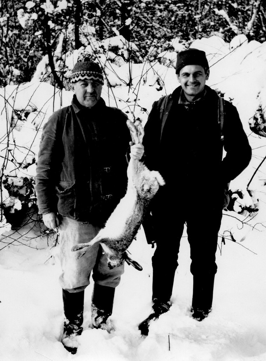 — Заяц, похоже, ранен и затаился. Давай так: иди туда, где ты сейчас стоял, а я тихонько пойду снова по следу. И смотри в оба!