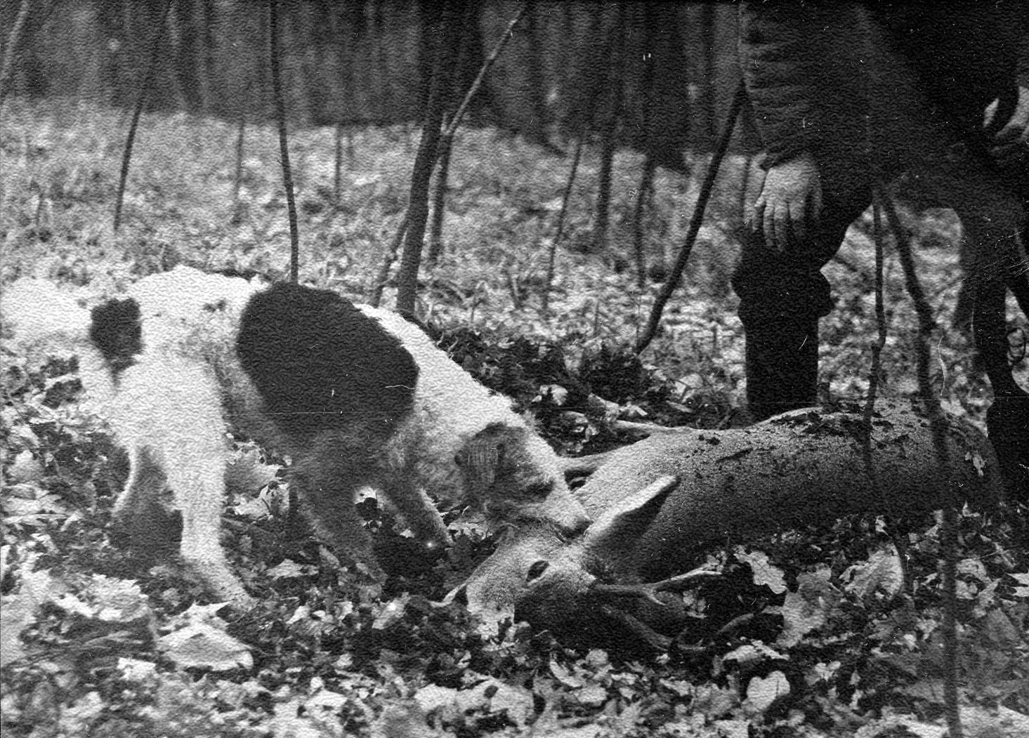 Очередной загон нам испортил трактор лесорубов с пустым прицепом, некстати протарахтевший по просеке, где стояли стрелки. В это время на стрелков как раз выходила косуля, но из-за трактора отвернула в загон и, как сквозь землю провалилась. Гонщики ее потом больше не видели. Все собрались на просеке, досадуя на очередную неудачу. Омелькович, посовещавшись с Трохимом, предлагает перейти долину и, пока еще есть немного светлого времени, сделать пару загонов до конца дня на той стороне долины по краю леса. Спускаемся лесистым склоном, выходим в долину. У края паханого поля, в травянистом ложке, набредаем на криничку. Она оправлена свежим срубом из толстых белеющих сосновых досок, едва возвышающимся над поверхностью земли. На жерди длиной в сажень вместо ведра привязан какой-то самодельный жестяной конус. Здесь делаем небольшую остановку для отдыха; этим конусом на жерди, как ведерком, достаем воду. Маленькими глотками с удовольствием утоляю жажду. Вода из криницы холодная и очень вкусная. Трохим называет это урочище «Гэрусовэ». Через пашню переходим на другую сторону долины в лес. Стрелки с Омельковичем отправились на номера, а я, отец, Викентьевич с фоксом и Трохим Гордеевич остаемся пока на месте. Растягивая нашу линию, подымаюсь ближе к вершине пологого склона и, пройдя полсотни шагов, останавливаюсь там, ожидая сигнала к гону. Вокруг молодой лиственный лес в основном из дуба, граба и ясеня. Густота древесных стволов скрывает лесную даль, видимость меньше ста шагов. Ждем. Через треть часа Гордеевич снизу подает