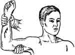 Начальным приемом первой помощи, который позволяет выиграть время для наложения жгута или давящей повязки, является сдавливание кровоточащего сосуда пальцем в ране или выше места повреждения на его протяжении по току крови (рис. 1). Для сдавливания сосуда прижмите артерию пальцем (рис. 2), либо зафиксируйте конечность в чрезмерно согнутом положении (рис.3).