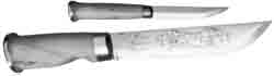 Наша справка — о настоящих финских ножах. Еще в начале века сельский мастер-кузнец Янн Марттиини начал вручную изготавливать ножи. Довольно скоро его изделия — прочные, сделанные со свойственной скандинавам основательностью, и без лишних “наворотов” — завоевали авторитет, и в 1926 г. фабрика, открытая в г. Рованиеми, получила заказ на изготовление ножей для королевской охраны.