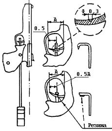 Расстояние между двумя параллельными оси канала ствола линиями, одна из которых проходит через заднюю точку конца крюка, а другая — через нижнюю точку его впадины по внутреннему периметру, не должно превышать 30 мм (при измерении крюк должен находиться в нейтральном положении).