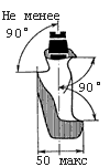 Опора для ладони должна выступать под углом не менее 90о по отношению к вертикальной оси рукоятки (рис. 6). Запрещены любые изгибы вверх опор для ладони, опоры для большого пальца и любой изгиб рукоятки вниз со стороны, противоположной большому пальцу.