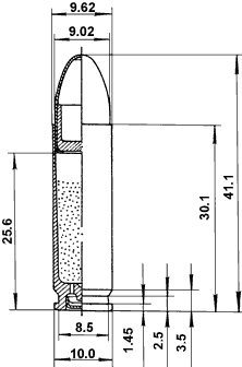 | Диаметр ведущей части пули, мм | 9,0–9,02 |