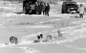 На моей памяти были два случая, когда парой русских псовых борзых затравили прибылого волка (в той самой Луганской области). Так что поохотиться на волка с борзыми и в наше время вполне реально, если, конечно, заняться этим серьезно. Во второй день состязаний было выставлено три своры русских псовых борзых. За работу по волку три собаки получили дипломы iii степени. Следует отметить, что все три собаки, проявившие злобу к волку, являются прямыми потомками Монарха-Славянского (владелец Н. Политуха), который в свое время работал по волку, разумеется, на садках. Это сын Монарха — Гацай-Стегай (владелец А. Федоров) и два внука — Прибой-Ясный (владелец А. Черетянко) и Персей-Ясный (владелец Н. Политуха). На мой взгляд, самое время возобновить, к сожалению, практически утраченные традиции селекции борзых.