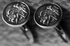 Наконец, если вы захотите иметь совершенно оригинальные аксессуары и при этом художественные способности и мастерство исполнителя позволяют реализовать этот замысел, то изображение придуманного вами сюжета можно получить на небольшом металлическом диске. Диск диаметром 16–18 мм можно использовать для изготовления малых пуговиц, запонок, вставок в рукоятки ножей и т.п. непосредственно. Если же малый диск наложить на больший (21–25 мм), то можно сделать пуговицу для верхней одежды (на цветной вкладке изображены такие диски диаметром 17 мм, изготовленные методом выдавливания пуансоном с обратным изображением). Тонкая фольга (толщиной 0,2–0,3 мм) в отожженом состоянии легко выдавливается (при неглубоком рельефе) на подкладке из чистого олова или третника в кольцевой обойме. Материал диска — любой достаточно пластичный металл (латунь, медь, мельхиор, серебро). Обратную (тыльную) сторону диска заполняют припоем, им же впоследствии припаивают диск к металлической основе. В качестве основы подойдут латунные солдатские пуговицы с предварительно спиленными армейскими символами. Диски на кости, пластмассе или дереве закрепляют с помощью эпоксидной смолы, при этом для более прочного соединения на обратной стороне диска нужно припаять небольшие штырьки, которые входят в соответствующие углубления на основе. Для изготовления оригинальных пуговиц также подойдут монеты с изображениями различных животных, особенно выпущенные в странах — бывших английских доминионах. В качестве декоративных элементов подчас используют сами монеты (если для вас они, конечно, не представляют коллекционного интереса), либо их копии, изготовленные методом гальванопластики. Если же говорить вообще, то производство охотничьих аксессуаров, даже такой "мелочевки", как пуговицы и значки, в Украине может быть объектом деятельности (и фактически является таковой во многих западноевропейских странах) какой-нибудь заинтересованной фирмы. И если изображение охотничьих сюжетов в произведениях искусства достаточно распространено и хорошо изучено, то применительно к предметам быта эта тема пока еще остается неисследованной.