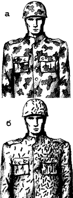 Рис.1.Камуфляжные костюмы: а — традиционный камуфляжный рисунок; б — новый камуфляжный рисунок