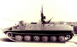 | Варіант установки на МТ-ЛБ 12,7-мм кулемета ДШКМТ. Кулемет у положенні для зенітної стрільби |