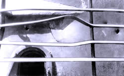 | Результати випробувань захисних гратів пострілом ПГ-7В: грати ушкоджені, броня ціла |