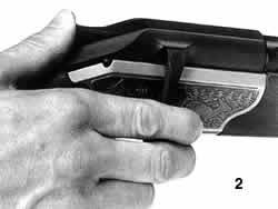 Фиксация затвора в переднем Фиксация затвора в переднем положении достигается за счет раздвижной втулки, входящей в кольцевой выступ патронника. Запирание осуществляется перемещением подпружиненного штока, упирающегося одним концом в патронник ствола, а другим — воздействующего на рычаг запирания. Открыть затвор невозможно, пока не взведена боевая пружина. Она размещена в теле ударника, который расположен в головке затвора. Боек ударника не выступает за пределы зеркала головки затвора даже в момент взведения ударника благодаря наличию в этом механизме передней (возвратной) пружины. Заряжение карабина осуществляется путем продольного перемещения затвора воздействием на его рукоятку. Взведение ударника происходит в результате перемещения ползуна, расположенного на хвостовике затвора, и не требует приложения особых усилий. Передвижение ползуна сопровождается подачей штока боевой пружины вперед, при этом шток сжимает пружину. Во взведенном положении ударник блокируется рычагом. Для снятия оружия с боевого взвода необходимо нажать на головку ползуна вниз и переместить его назад.