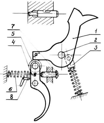 В описанных системах запирания передний подствольный крюк имеет впереди выемку, которой упирается в осевой болт колодки, надежно соединяя стволы с колодкой.