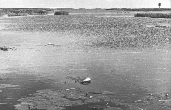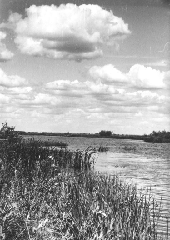 Попутный ветер гонит небольшую волну по воде, ее гребни поблескивают, искрясь золотым бисером на солнце. Через два с половиной часа, пройдя «море», «Ракета» пристает на первой остановке «Теремцы», расположенной, примерно, в 90 км от Киева. Здесь с нами сходят несколько охотников и спешат на базу УООР, мы — туда же. Заложив наши с отцом охотбилеты, берем на базе у егеря, Ивана Степановича, две устойчивые, вместительные лодки. Сносим в них весла, укладываем грузы-якоря, черпаки для воды, спасательные круги, рюкзаки, ружья, спиннинги и отплываем вниз по Днепру к разливам водохранилища. Я — на веслах в одной лодке с отцом, Саша — во второй. Через ближнюю «первую» протоку из Днепра выходим на широкий плёс. Сразу почувствовался встречный южный ветер, и нам пришлось подналечь на весла. Волны кое-где шли уже с белыми гребешками.