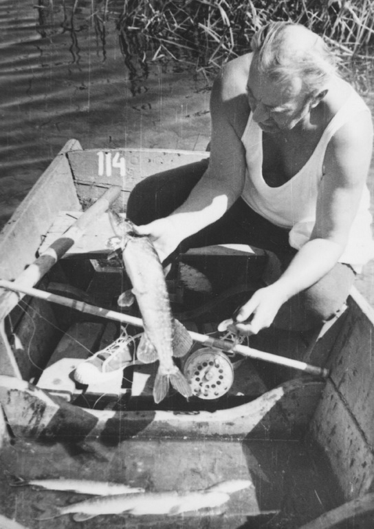 От широких припятьских плёс с другой стороны залив отделял низкий, узкий остров. На нем, в известном нам месте, на сухой полянке среди высокой, густой осоки, у лозового куста мы поставили брезентовую палатку. Место уютное, хорошо закрыто от ветра со всех сторон. Разведя костерок, я с отцом занялся приготовлением обеда-ужина, а Шурик, горя нетерпением, поехал спиннинговать. Часа через полтора он вернулся со щучкой двухфунтовкой и окуньком. Оживленно рассказывая о своей рыбалке, сообщил, как еле выгребал обратно против ветра и что пару щук у него сошло.