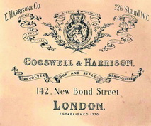 Несколько спорной является дата присоединения к фирме плеяды оружейников с фамилией Харрисон (Harrison), датируемая временными рамками от 1837 до 1860 гг. и позже. Во всяком случае первым, видимо, именно в 1837 г. к фирме Когсвелла присоединился Эдвард Харрисон (Edward Harrison), в тот момент достаточно широко известный эксперт по огнестрельному оружию, а дальше есть две даты: 1860 и 1863 гг. как даты присоединения Эдварда Харрисона к руководству компании как равноправного партнера и совладельца и изменение старого названия с «Benjamin Cogswell, Gun&Pistol Warehouse, Gunmaker» на «Cogswell & Harrison» (первую указывает Е. Копейко, о второй пишут в своей книге «Cogswell & Harrison. Два столетия производства ружей» Грэм Кули и Джон Ньютон (COGSWELL & HARRISON: TWO CENTURIES OF GUNMAKING. By Graham Cooley and John Newton, 2000). Адрес оба источника указывают все тот же: 224 Стренд, Лондон.