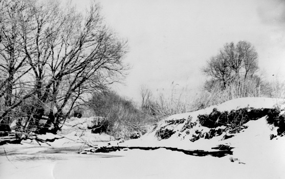 На пашне, в шагах полста от посадки красуется одинокий густой куст серебристого лоха — «дикой маслины». Вокруг него на высоких сухих стеблях пырея виднеются пять гнездышек-шариков, но не птичьи, вход у них сбоку. Осенью сплели их из травы цепкохвостые мышки-малютки, а сейчас на зимние квартиры переселились в норки, там тепло и безопасно. Хотя, не совсем безопасно: на снегу двухчёткой следы с прыжками в две пяди видны. Наследила тут неутомимая мышиная гонительница ласка — маленькая хищница, которая за мышью и в нору пролезет. На краю посадки красногрудые снегири шелушат семена-летучки татарского клена. Самочки бледно-кофейные и их в стайке больше. Птички тихо пересвистываются, роняя выеденные летучки. Два снегиря на снег слетели и алеют там, подбирая упавшие семена. В посадке белеют ровные, гладкие побеги кого-то кустарника. На высоту роста кора их кое-где объедена. Грозди крупных семян похожи на семена вяза — семечко с крылаткой. Во многих гроздях семена погрызены. Мышами, что ли?