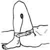 Начальным приемом первой помощи, который позволяет выиграть время для наложения жгута или давящей повязки, является сдавливание кровоточащего сосуда пальцем в ране или выше места повреждения на его протяжении по току крови (рис. 1). Для сдавливания сосуда прижмите артерию пальцем (рис. 2), либо зафиксируйте конечность в чрезмерно согнутом положении (рис.3).