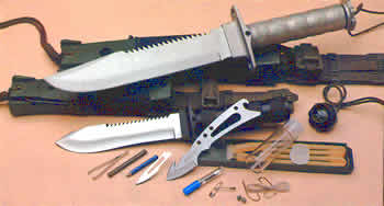 Большой охотничий нож общего применения не нужен в местности, где нет джунглей или тайги, и где, заблудившись, можно за 40 минут ходьбы в любом направлении выйти к населенному пункту или дороге. Но такое "орудие" имеет право на существование хотя бы потому, что нож — не только инструмент, но и объект любования и гордости охотника, часть его быта, даже в какой-то мере ритуальный предмет. А так как о вкусах спорить бесполезно, то почему бы современному городскому охотнику и не покрасоваться во время утиной охоты, на охотбазе с "крутым" ножом для выживания (см. иллюстрации на цветной вкладке).